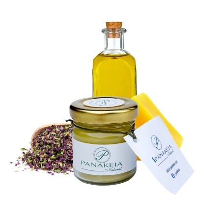 I-Panakeia, niewielka lokalna manufaktura, znajduje się w otoczeniu bizantyjskich wiosek, rozsianych u podnóża gór Tajget, wśród gajów oliwnych i sadów owocowych, w sercu półwyspu Mani. Nasze kremy i maści z wosku pszczelego zawierają ekstrakty z ziół i każda z nich jest wyjątkowa.